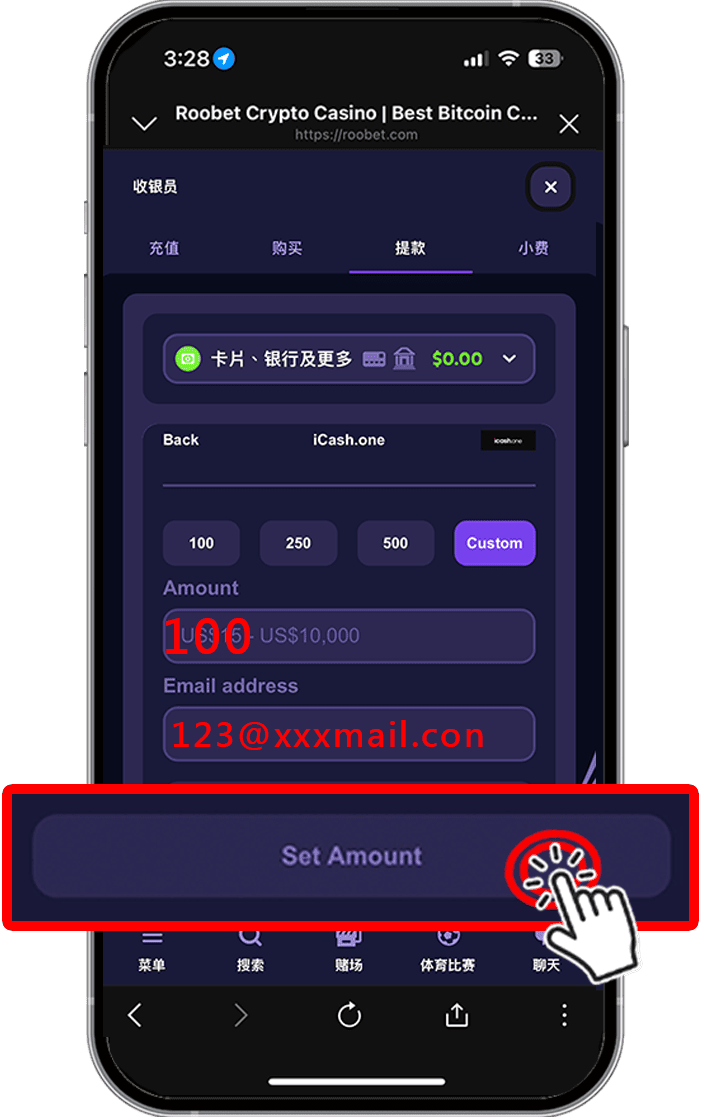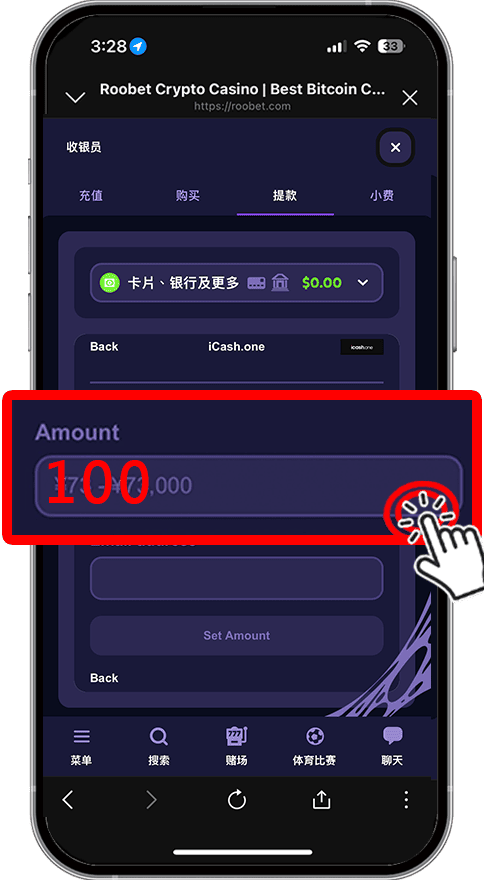 於 Amount 空格處,填入您要提現的金額。(以100為例)![]()